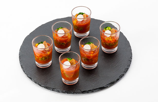 「南郷トマト酢」を使用した食べる野菜スープ(ANA提供)