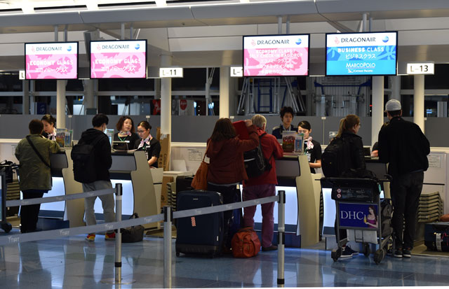 羽田国際線ターミナルに設けられた香港ドラゴン航空のチェックインカウンター=3月29日 PHOTO: Tadayuki YOSHIKAWA/Aviation Wire