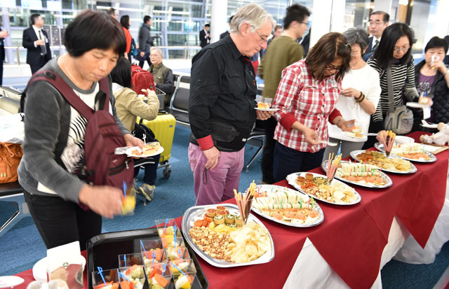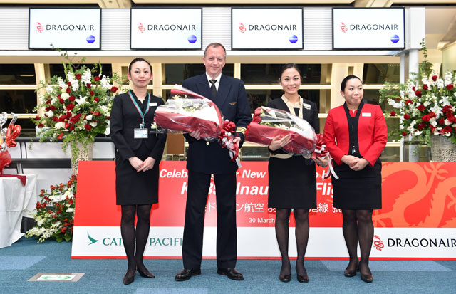 羽田の搭乗口前では、香港行きKA397便の出発前に記念セレモニーが開かれた。CPAのクラレンス・タイ日本支社長は、「香港は日本人に人気があり、日本は香港でも人気の旅行先。文化やビジネス面で日本と香港の交流が一層深まり、観光産業の発展につなげたい」とあいさつした。香港行き初便のジム・アシュビー機長と、客室乗務員のジジ・リー・インフライト・サービス・マネージャーには、花束が手渡された。