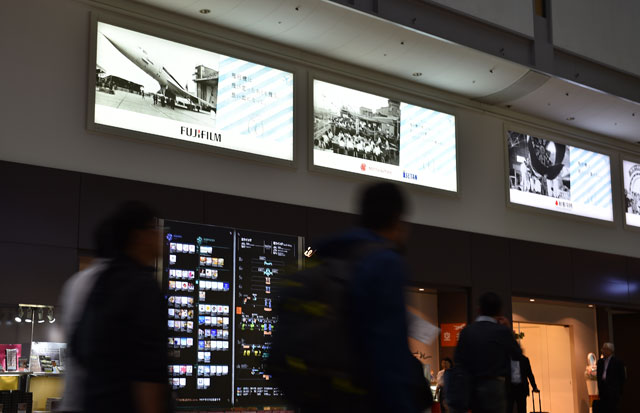 開館60周年を記念し第2ターミナルの出発ロビー壁面に飾られた写真=5月21日 PHOTO: Tadayuki YOSHIKAWA/Aviation Wire