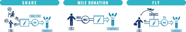 また、ANAマイレージクラブ(AMC)会員を対象に、マイルでの支援も開始。1口3000マイルから寄付を受け付ける。1マイルは1円に相当する。BLUE WINGの記事をSNSでシェアすると、1シェアにつき15円相当を社会起業家に還元。BLUE WINGを経由して航空券を購入すると、運賃の1%相当額も還元する。