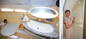 A380のシャワールームは床暖房も完備=12年7月1日 PHOTO: Tadayuki YOSHIKAWA/Aviation Wire
