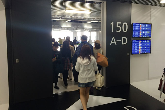 チェックインを終えて、午前6時59分に保安検査場を通過。搭乗口150Dへ向かう。