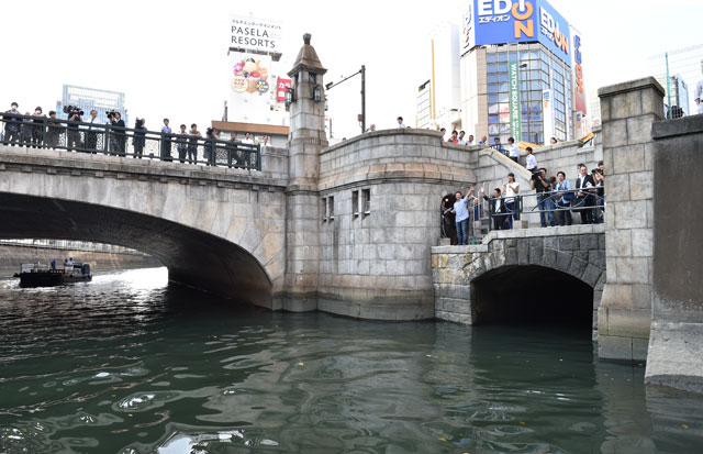 万世橋船着き場から運河線を見送る人たち=9月15日 PHOTO: Tadayuki YOSHIKAWA/Aviation Wire