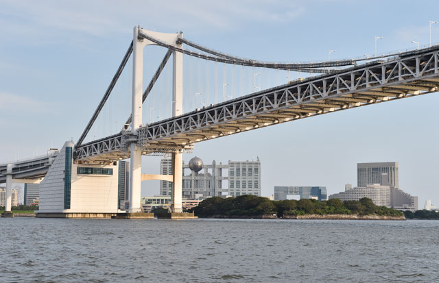 東京港に掛かるレインボーブリッジの下を運河船で通過する=9月15日 PHOTO: Tadayuki YOSHIKAWA/Aviation Wire