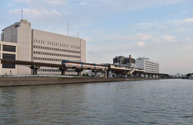 海老取川から見た東京モノレール整備場駅=9月15日 PHOTO: Tadayuki YOSHIKAWA/Aviation Wire