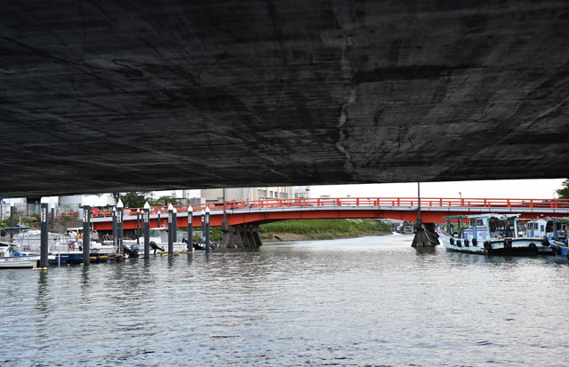 海老取川に掛かる穴守橋の下から見た稲荷橋=9月15日 PHOTO: Tadayuki YOSHIKAWA/Aviation Wire