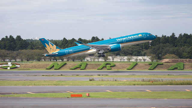 ホーチミンへ向けて成田を離陸するベトナム航空のA350-900=9月20日 PHOTO: Tatsuyuki TAYAMA/Aviation Wire
