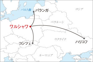 すべてワルシャワを発着する路線で、3月1日からはウクライナのハリコフ(ハルキウ)便を週5往復で開設。エンブラエル175型機で運航する。
