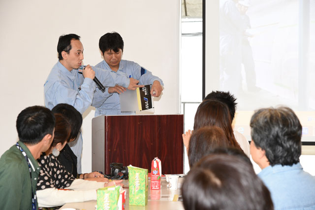 クリアファイルを使ってデカール貼りを体験するFacebookイベントの参加者=11月19日 PHOTO: Motoyoshi OHMURA/Aviation Wire