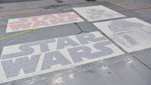 スター・ウォーズジェットは、既存機を塗り直した上で、デカールを貼っている。機体の塗装は法規などの理由で、8年以内に塗り直しが生じるが、デカールの寿命はこれよりも短く、2年程度で貼り直すことになる。