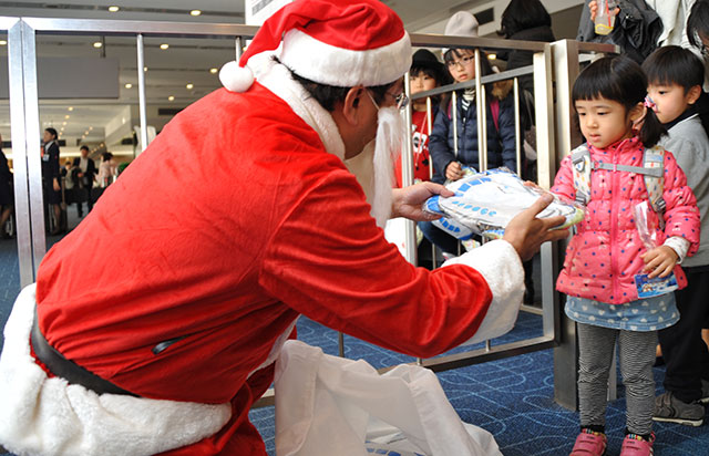 プレゼントを受け取る子ども=12月24日 PHOTO: Yusuke KOHASE/Aviation Wire
