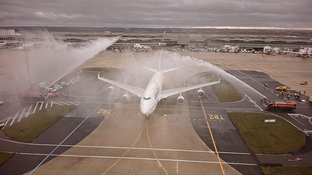 商業運航で最終便となったのは、メキシコシティを10日午後9時29分に出発したパリ行きのAF439便。シャルル・ド・ゴール空港には11日午後1時54分に到着し、放水アーチで迎えられた。
