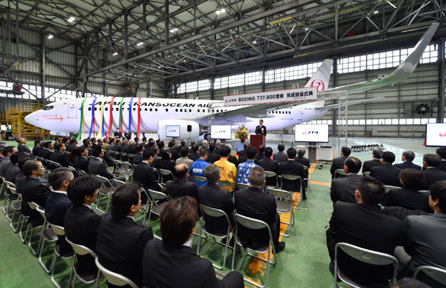 那覇空港でお披露目されたJTAの737-800=16年2月2日 PHOTO: Tadayuki YOSHIKAWA/Aviation Wire