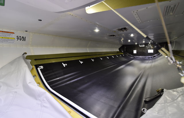 後方貨物室に備えられた軽量タイプの新型カーゴローダー=16年2月2日 PHOTO: Tadayuki YOSHIKAWA/Aviation Wire