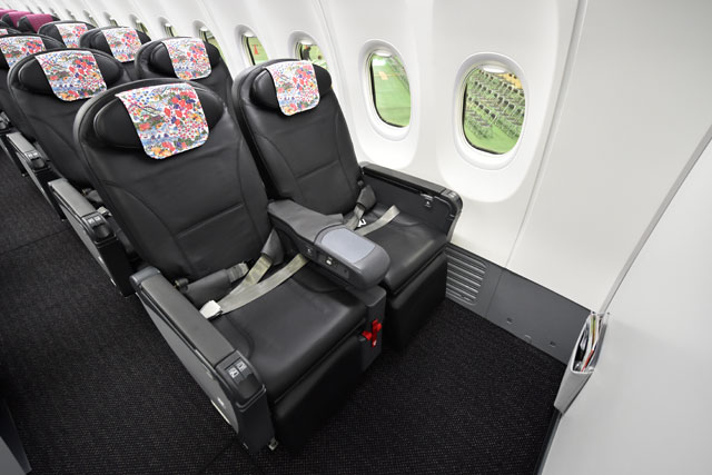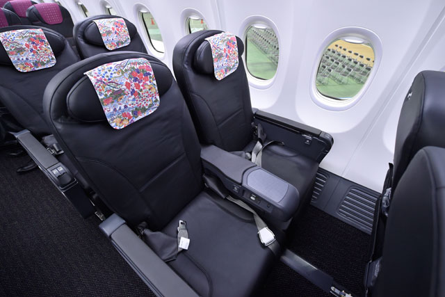 JTAの737-800初号機のクラスJシートの2列席側=16年2月2日 PHOTO: Tadayuki YOSHIKAWA/Aviation Wire