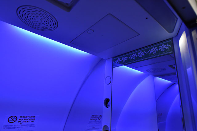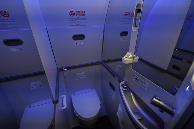 後方ラバトリーの「フローラルルーム」=16年2月2日 PHOTO: Tadayuki YOSHIKAWA/Aviation Wire