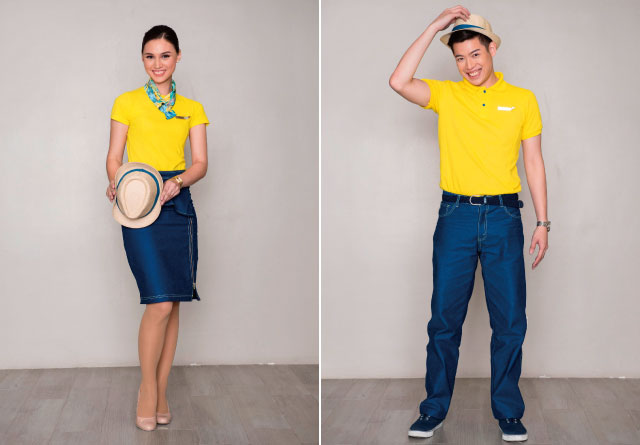 男女ともに黄色のシャツとデニムを採用したセブパシフィック航空の新制服(同社提供)