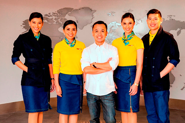 新制服をデザインしたジュン・エスカリオ氏(中央、セブパシフィック航空提供)