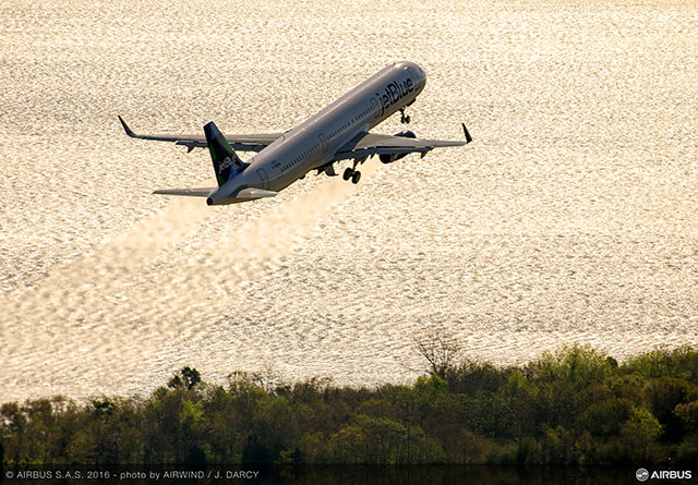 モビールを離陸する米国製初号機のA321=16年3月21日 PHOTO: James Darcy, Airwind/Airbus