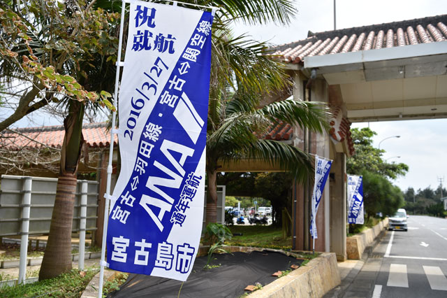 羽田線就航を歓迎する宮古空港ののぼり=16年3月27日 PHOTO: Tadayuki YOSHIKAWA/Aviation Wire