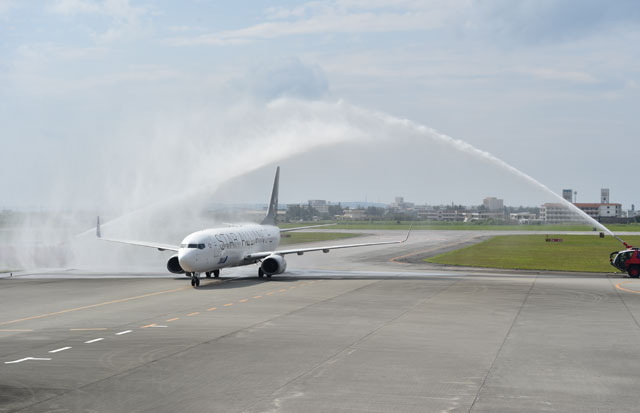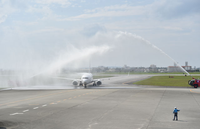 宮古空港に到着するANAの羽田発初便=16年3月27日 PHOTO: Tadayuki YOSHIKAWA/Aviation Wire