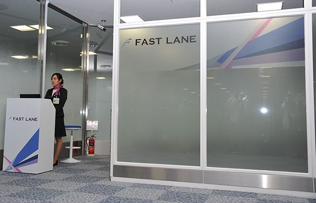 30日から供用を開始する成田空港のファーストレーン=16年3月28日 PHOTO: Yusuke KOHASE/Aviation Wire