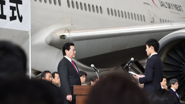 松井氏は、「ニューヨークへはJALで向かった。社員の皆さんが温かくしてくれたことで不安が消えた」と渡米時の心境を明かし、それ以来JALファンだという。「皆さんの力でファンを増やして欲しい」と語りかけた。