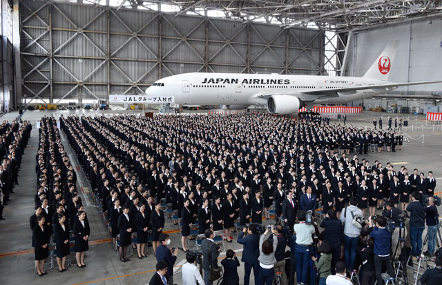 ・JAL、3年ぶり再上場後初の入社式 植木社長「選んでくれてありがとう」(13年4月1日)