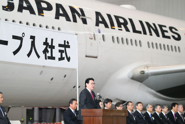 JALは2010年1月に経営破綻し、2012年9月に再上場を果たした。植木社長は「新入社員は今の新生JALを見て、気に入ってくれて入社してくれた。それを裏切ってはいけないのは、我々中堅以上の人間だ」と語った。