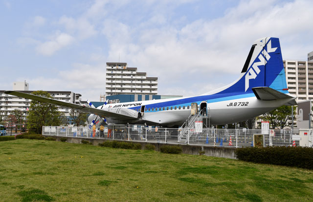 所沢航空発祥記念館が航空公園駅前に展示している元ANKのYS-11A=16年4月16日 PHOTO: Tadayuki YOSHIKAWA/Aviation Wire