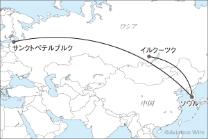 ソウル-イルクーツク線は5月13日から10月28日まで、月曜と金曜の週2往復を運航する。6月30日までのイルクーツク発は火曜と土曜に運航する。運航機材はボーイング737-900ER型機(159席:ビジネス12席、エコノミー147席)。