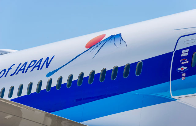 ANAの787-9に貼られた富士山のデカール(同社提供)