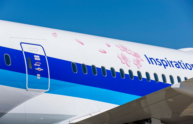 ANAの787-9に貼られたサクラのデカール(同社提供)