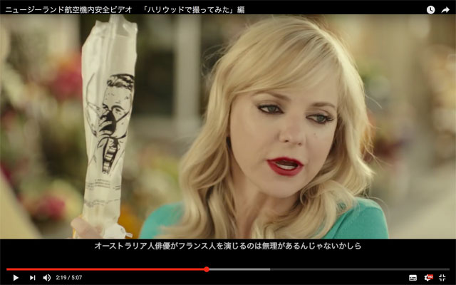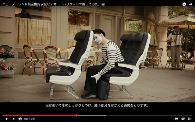 ニュージーランド航空機内安全ビデオ 「ハリウッドで撮ってみた」編 (YouTube)
