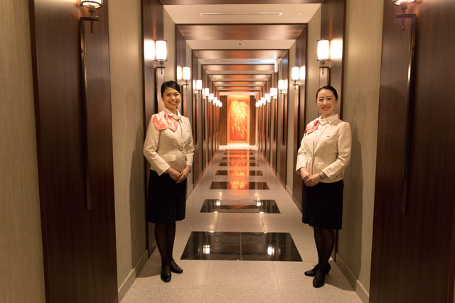 福岡空港に新設されたダイヤモンド・プレミアラウンジ入口からのアプローチ=17年3月28日 PHOTO: Tatsuyuki TAYAMA/Aviation Wire