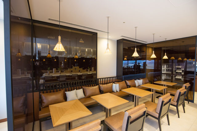 福岡空港サクララウンジのテーブル席=17年3月28日 PHOTO: Tatsuyuki TAYAMA/Aviation Wire