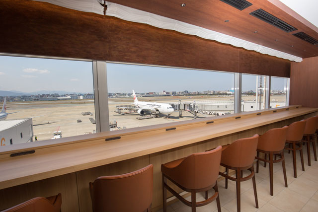 滑走路を一望できる福岡空港サクララウンジのカウンター席=17年3月28日 PHOTO: Tatsuyuki TAYAMA/Aviation Wire