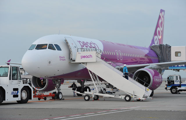 関西空港で出発を待つ初便の札幌行きMM101便=12年3月1日 PHOTO: Tadayuki YOSHIKAWA/Aviation Wire