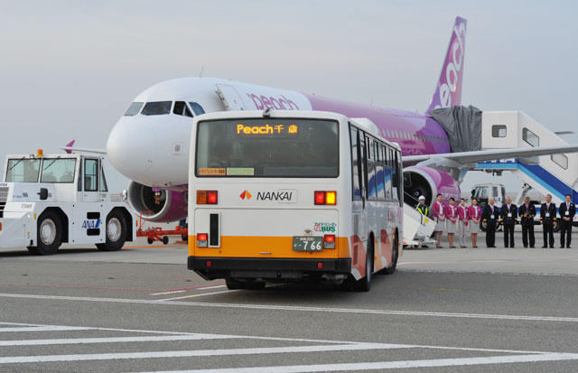 初便となった札幌行きMM101便の乗客を乗せたバス=12年3月1日 PHOTO: Tadayuki YOSHIKAWA/Aviation Wire