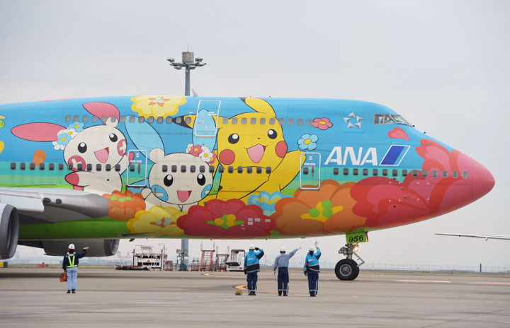 羽田空港でお花ジャンボを見送るANAの地上係員=11月30日 PHOTO: Tadayuki YOSHIKAWA/Aviation Wire ©Pokémon