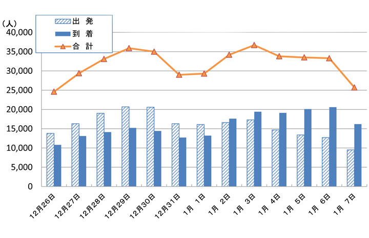 12月26日から1月7日までの旅客推計グラフ(新関空会社の資料から)