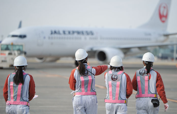 高知行き1487便の見送りに向かう女性スタッフ=3月3日 PHOTO: Tadayuki YOSHIKAWA/Aviation Wire