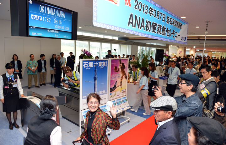 新石垣空港の初便となったANA1762便に乗り込む乗客=3月7日 PHOTO: Tadayuki YOSHIKAWA/Aviation Wire