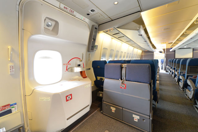 L2ドア付近のジャンプシート=13年12月 PHOTO: Tadayuki YOSHIKAWA/Aviation Wire