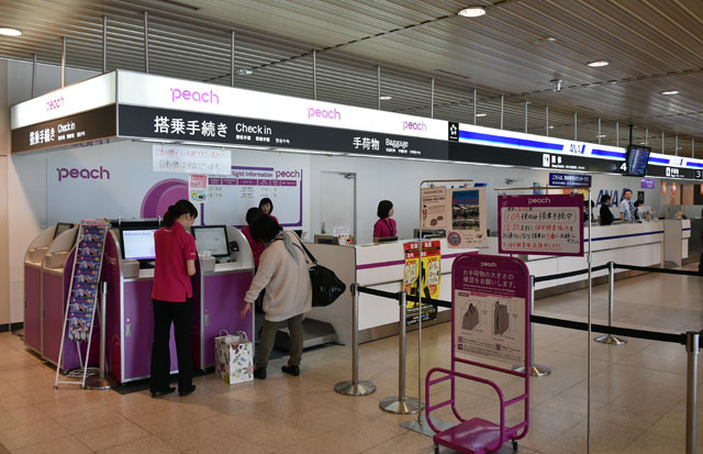 新千歳空港のピーチのカウンター=5月20日 PHOTO: Tadayuki YOSHIKAWA/Aviation Wire