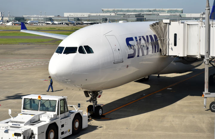 搭乗準備が進むスカイマークのA330=6月14日 PHOTO: Tadayuki YOSHIKAWA/Aviation Wire