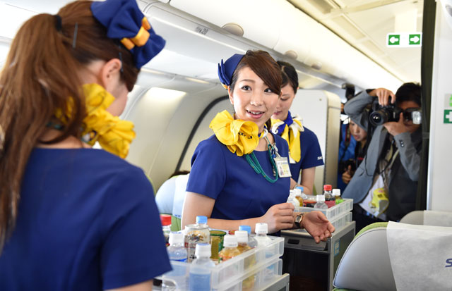 機内販売の状況を確認する客室乗務員=6月14日 PHOTO: Tadayuki YOSHIKAWA/Aviation Wire