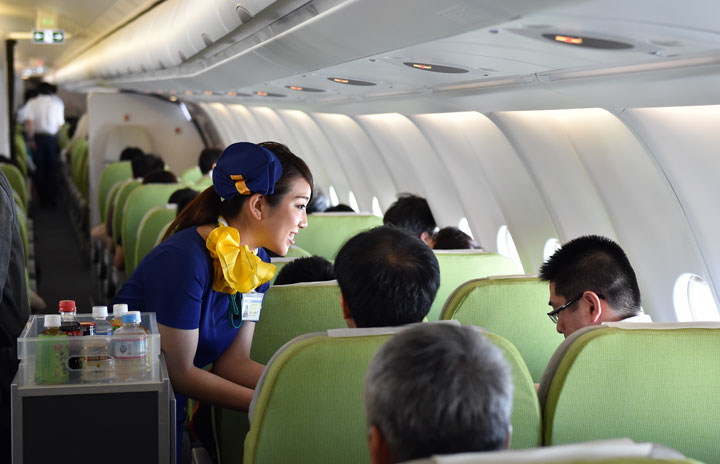 機内販売の注文を取る客室乗務員=6月14日 PHOTO: Tadayuki YOSHIKAWA/Aviation Wire