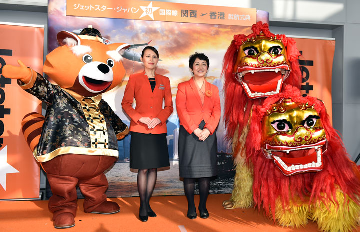 関空で記念撮影する鈴木社長ら=2月28日 PHOTO: Tadayuki YOSHIKAWA/Aviation Wire